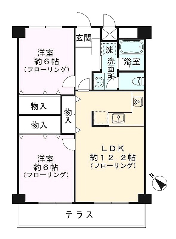 | 間取り詳細 | 洋室 6畳 、 洋室 6畳 、 LDK 12.2畳 |
