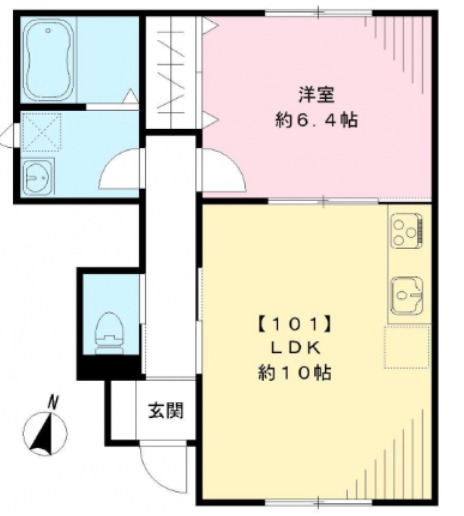 洋室 6.4畳 、 LDK 10畳