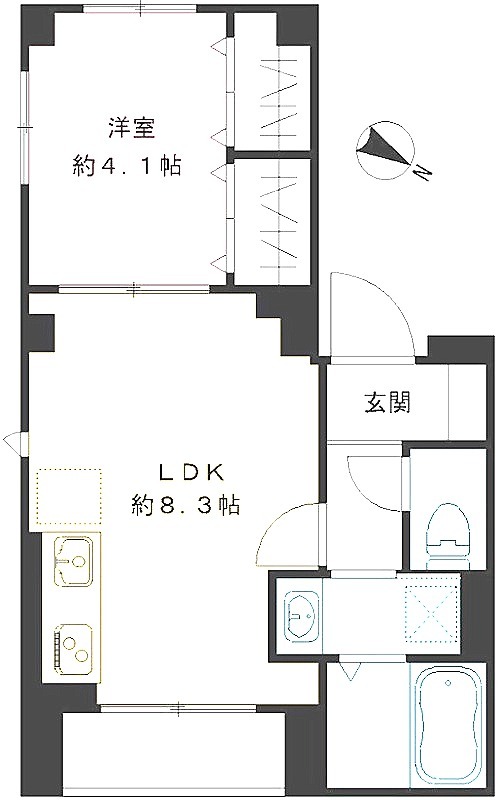 洋室 4.1畳 、 LDK 8.3畳