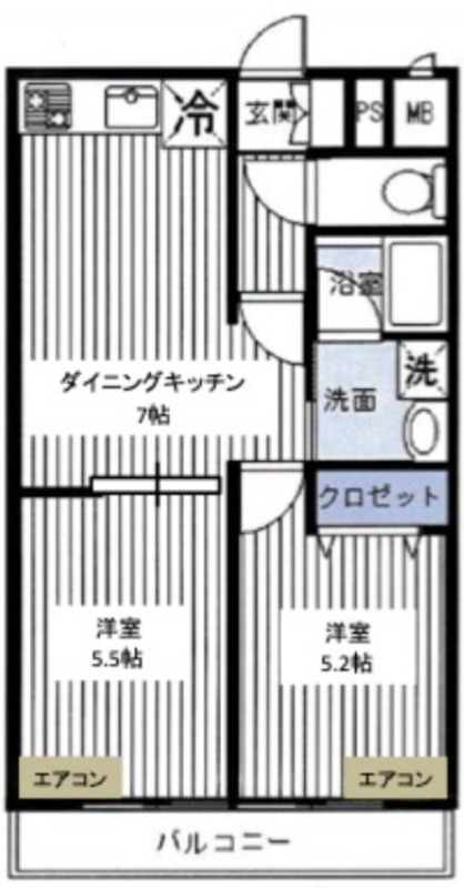 | 間取り詳細 | 洋室 5.5畳 、 洋室 5.2畳 、 DK 7畳 |