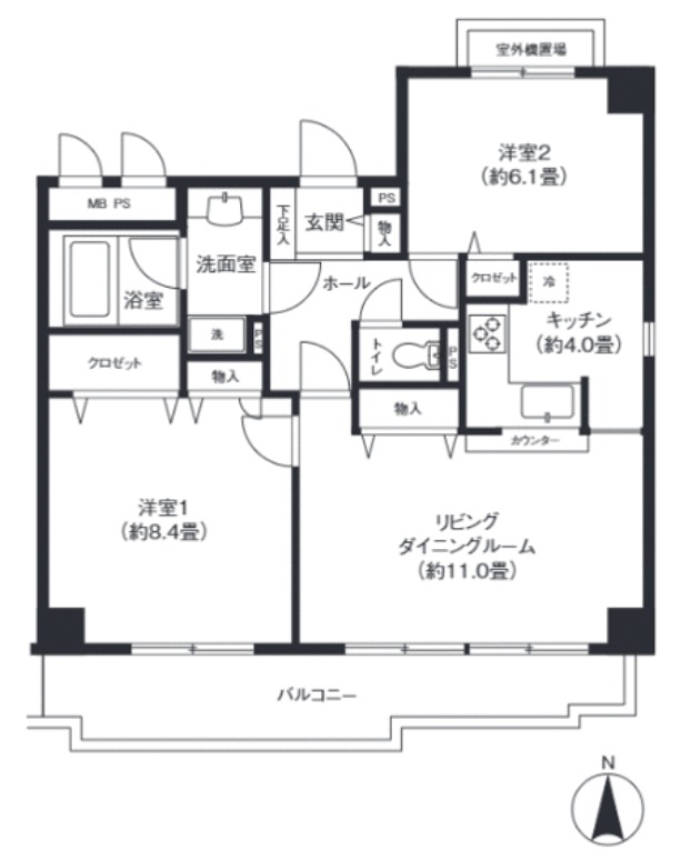 | 間取り詳細 | 洋室 8.4畳 、 洋室 6.1畳 、 LDK 14畳 |