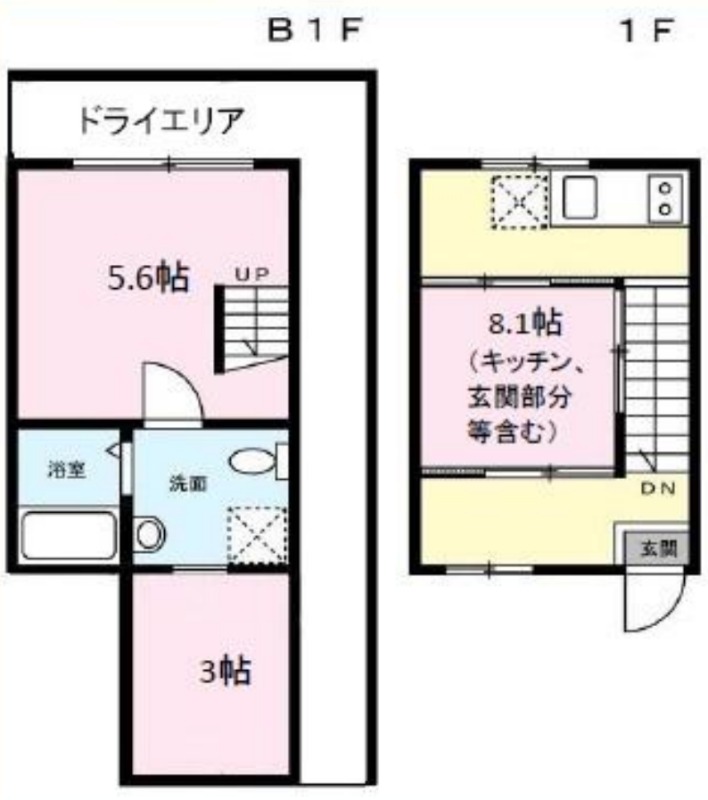 | 間取り詳細 | 洋室 5.6畳 、 DK 8.1畳 、 S 3畳 |