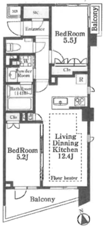 | 間取り詳細 | 洋室 5.5畳 、 洋室 5.2畳 、 LDK 12.4畳 |