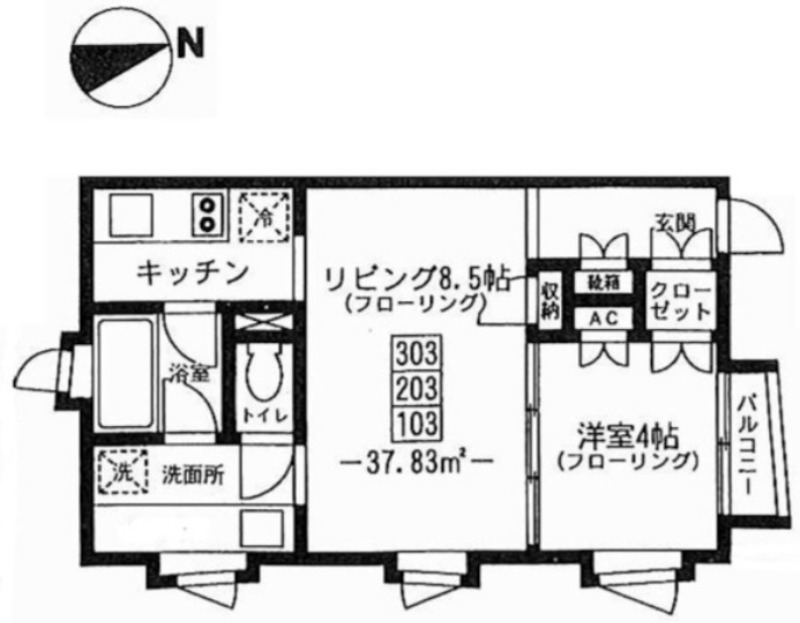 | 間取り | 1LDK | 面積 | 37.83㎡ |