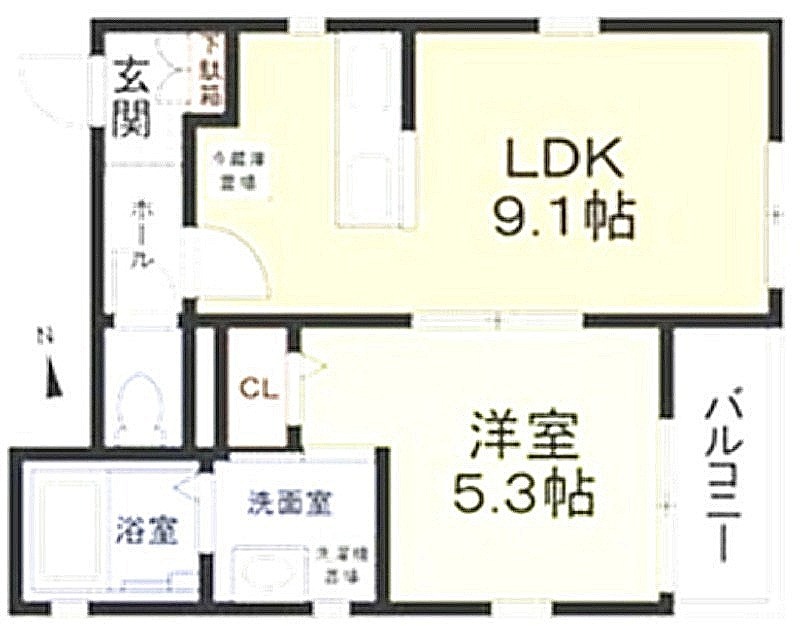 洋室 5.3畳 、 LDK 9.1畳