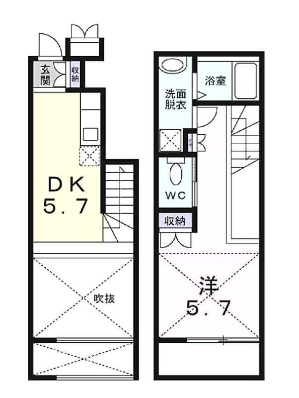 洋室 5.7畳 、 DK 5.7畳