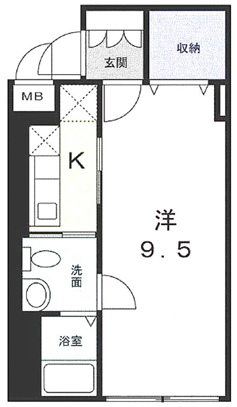 洋室 9.5畳 、 K 畳