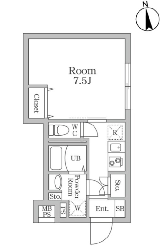 洋室 7.5畳 、 K 畳