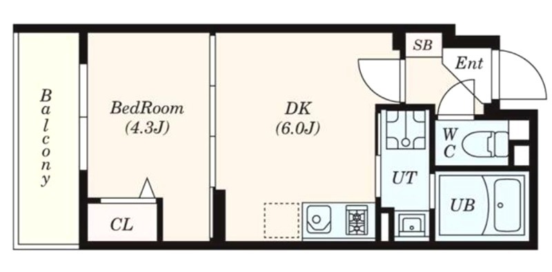 洋室 4.3畳 、 DK 6畳
