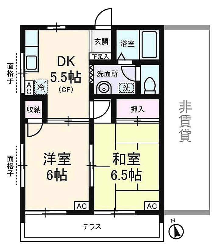 | 間取り詳細 | 洋室 6畳 、 和室 6.5畳 、 DK 5.5畳 |