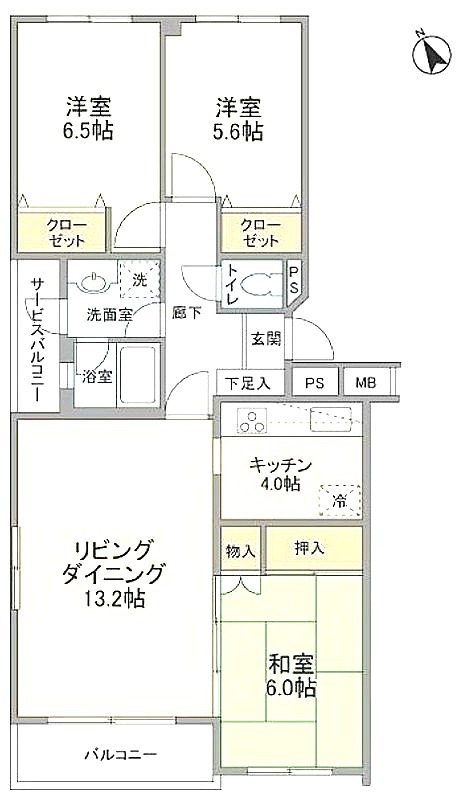 | 間取り詳細 | 洋室 6.5畳 、 洋室 5.6畳 、 和室 6畳 、 LDK 17.2畳 |
