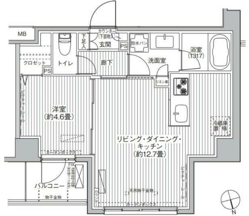洋室 4.6畳 、 LDK 12.7畳