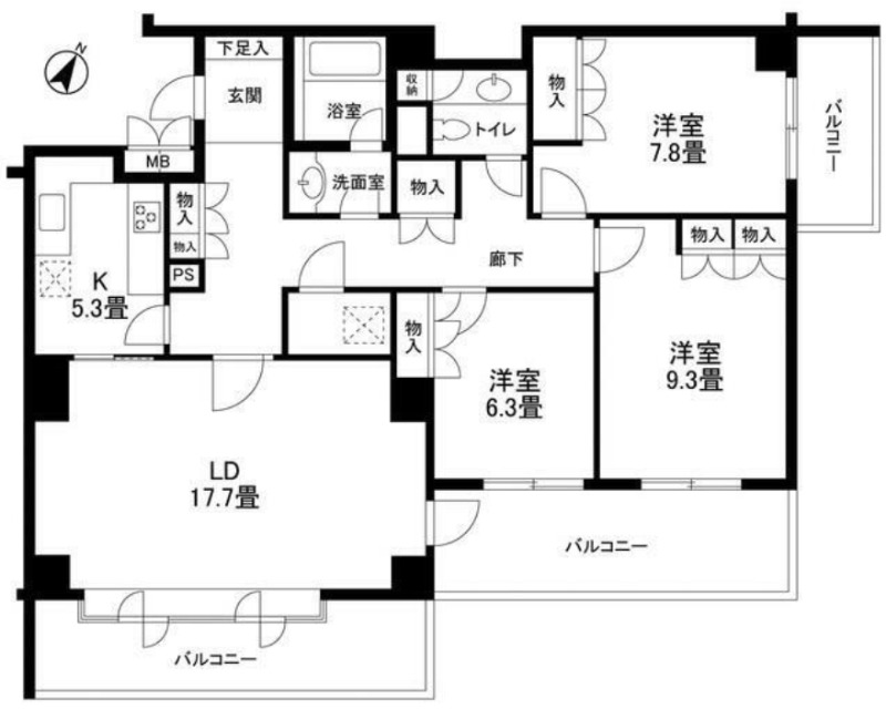 | 間取り詳細 | 洋室 9.3畳 、 洋室 7.8畳 、 洋室 6.3畳 、 LDK 23畳 |