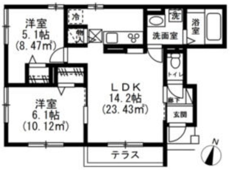 | 間取り詳細 | 洋室 6.1畳 、 洋室 5.1畳 、 LDK 14.2畳 |