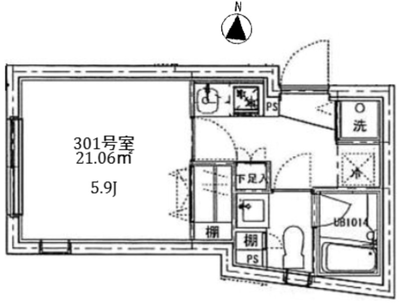 | 間取り | 1K | 面積 | 21.06㎡ |