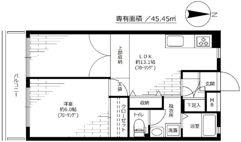 | 間取り | 1LDK | 面積 | 45.45㎡ |