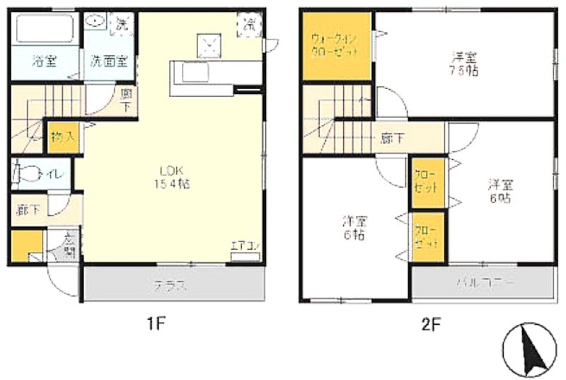 | 間取り詳細 | 洋室 7.5畳 、 洋室 6畳 、 洋室 6畳 、 LDK 15.4畳 |