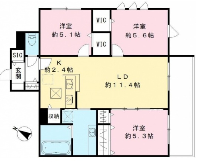 | 間取り詳細 | 洋室 5.6畳 、 洋室 5.3畳 、 洋室 5.1畳 、 LDK 13.8畳 |