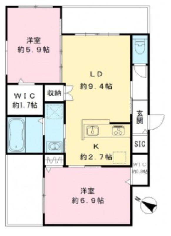 | 間取り詳細 | 洋室 6.9畳 、 洋室 5.9畳 、 LDK 13.1畳 |