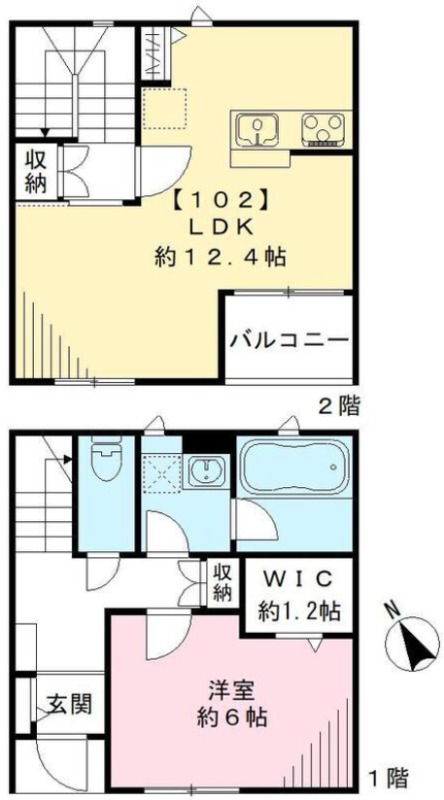 洋室 6畳 、 LDK 12.4畳