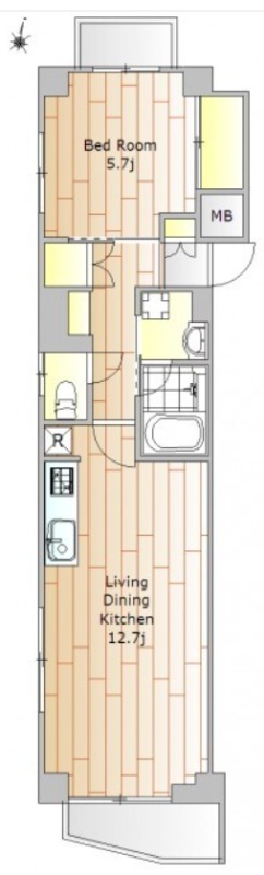 洋室 5.7畳 、 LDK 12.7畳