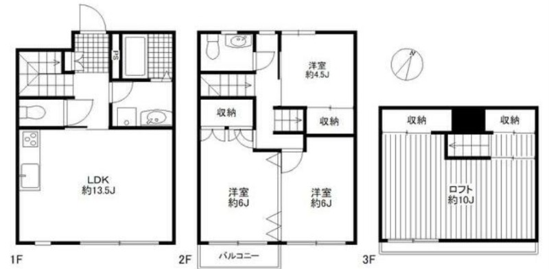 | 間取り詳細 | 洋室 6畳 、 洋室 6畳 、 洋室 4.5畳 、 LDK 13.5畳 |