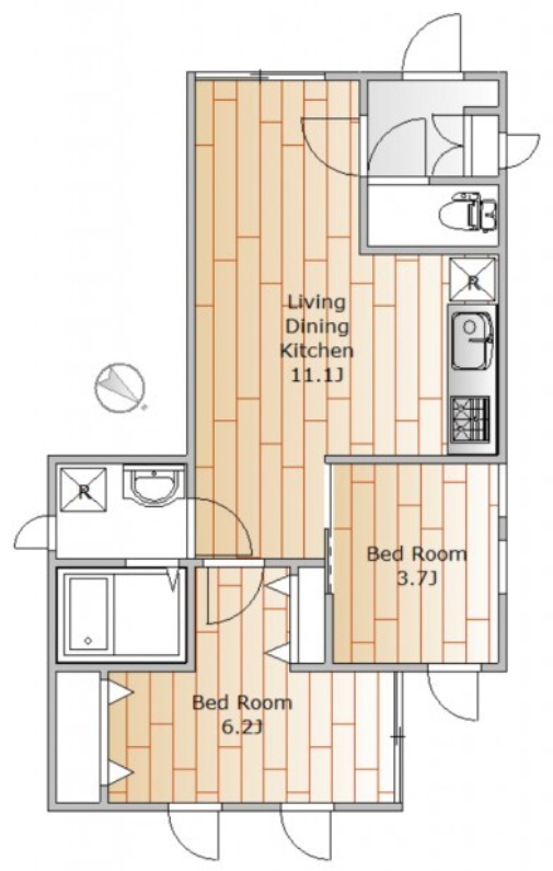 | 間取り詳細 | 洋室 6.2畳 、 洋室 3.7畳 、 LDK 11.1畳 |