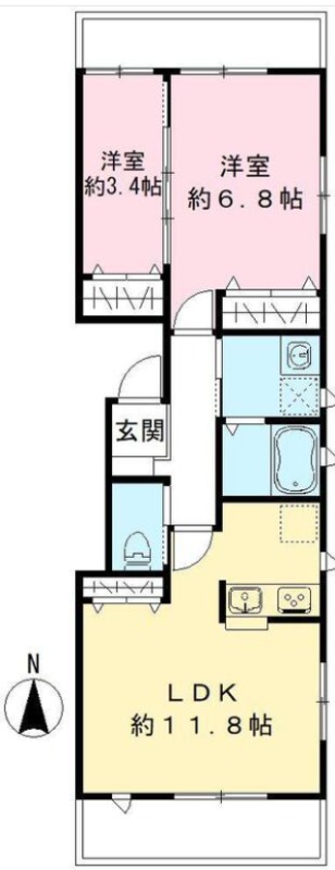 | 間取り詳細 | 洋室 6.8畳 、 洋室 3.4畳 、 LDK 11.8畳 |