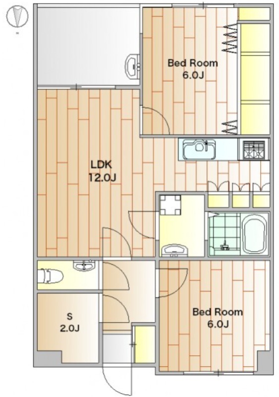 | 間取り詳細 | 洋室 6畳 、 洋室 6畳 、 LDK 12畳 、 S 2畳 |