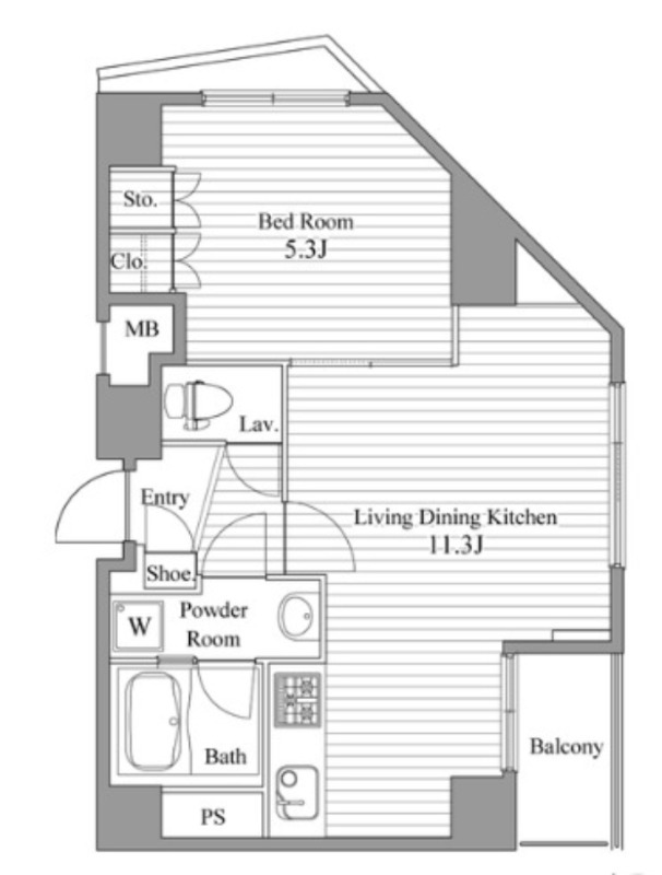 洋室 5.3畳 、 LDK 11.3畳