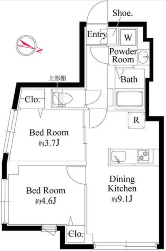 洋室 3.7畳 DK 9.1畳 |