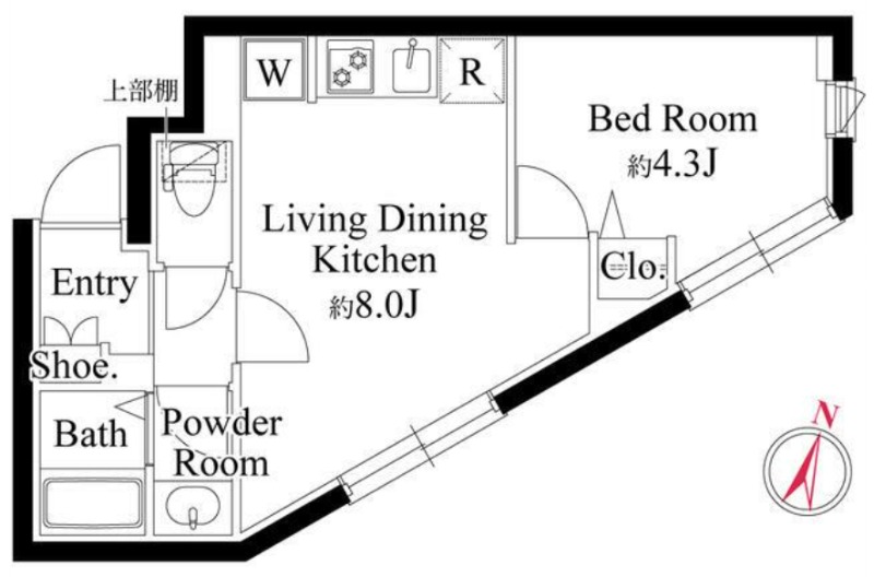 洋室 4.3畳 、 LDK 8畳