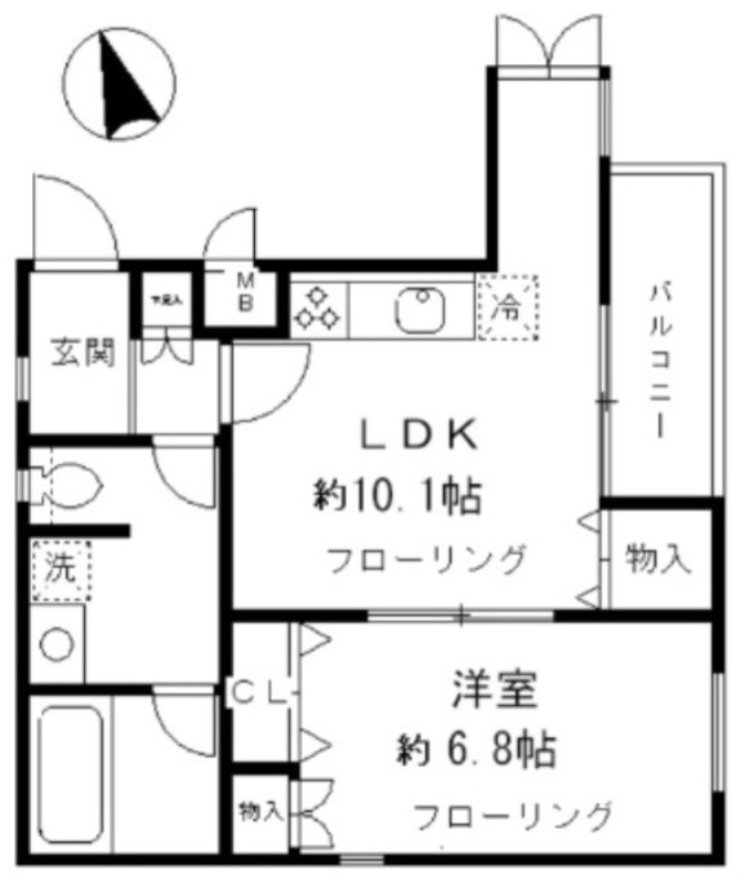 | 間取り詳細 | 洋室 6.8畳 、 LDK 10.1畳 |