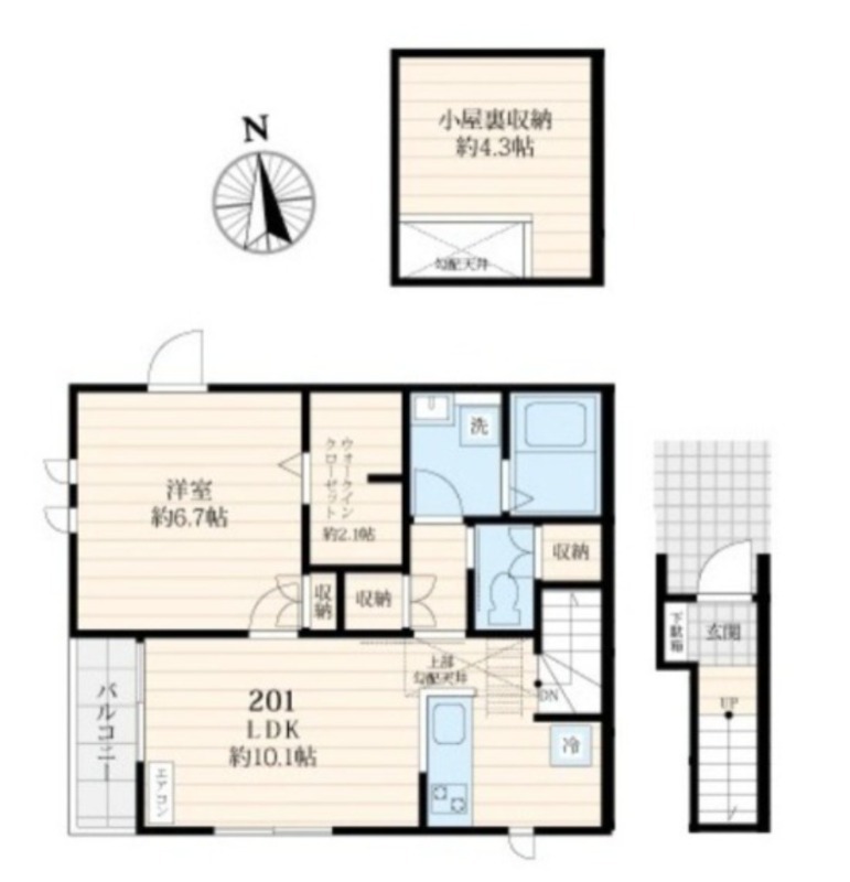 洋室 6.7畳 、 LDK 10.1畳