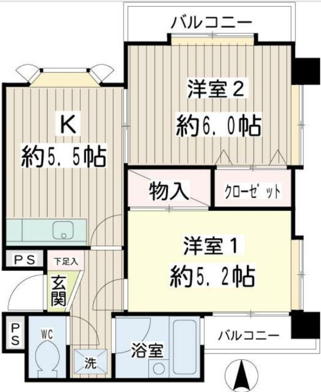 洋室 5.2畳 K 5.5畳 |